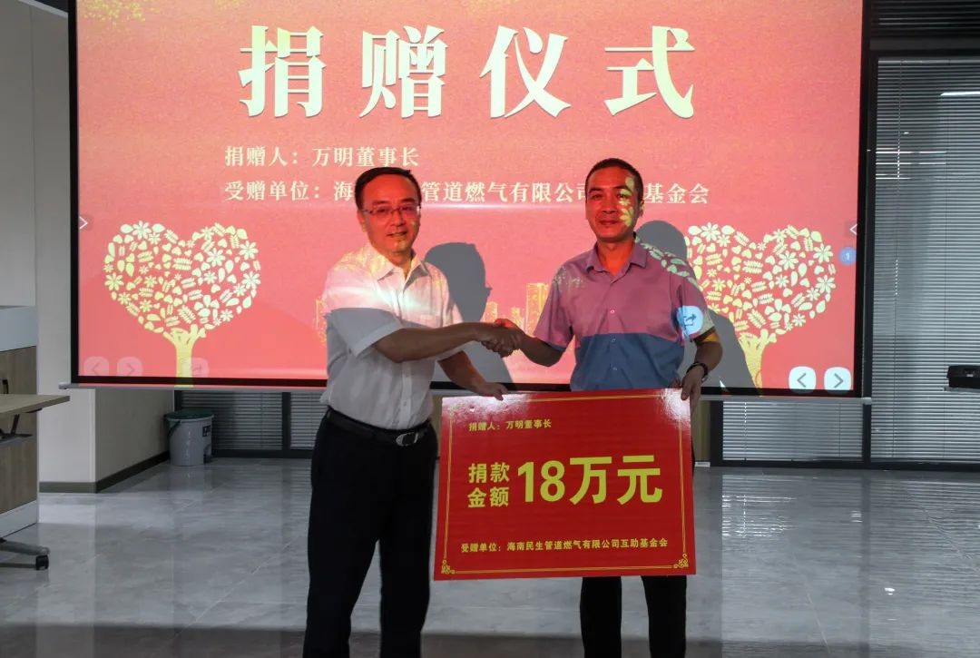 9月16日,民生眾和集團(tuán)工會第一屆第二次職工代表大會順利召開。萬明董事長以個人名義向海南民生燃?xì)饣ブ饡栀泿头鲑Y金18萬元。