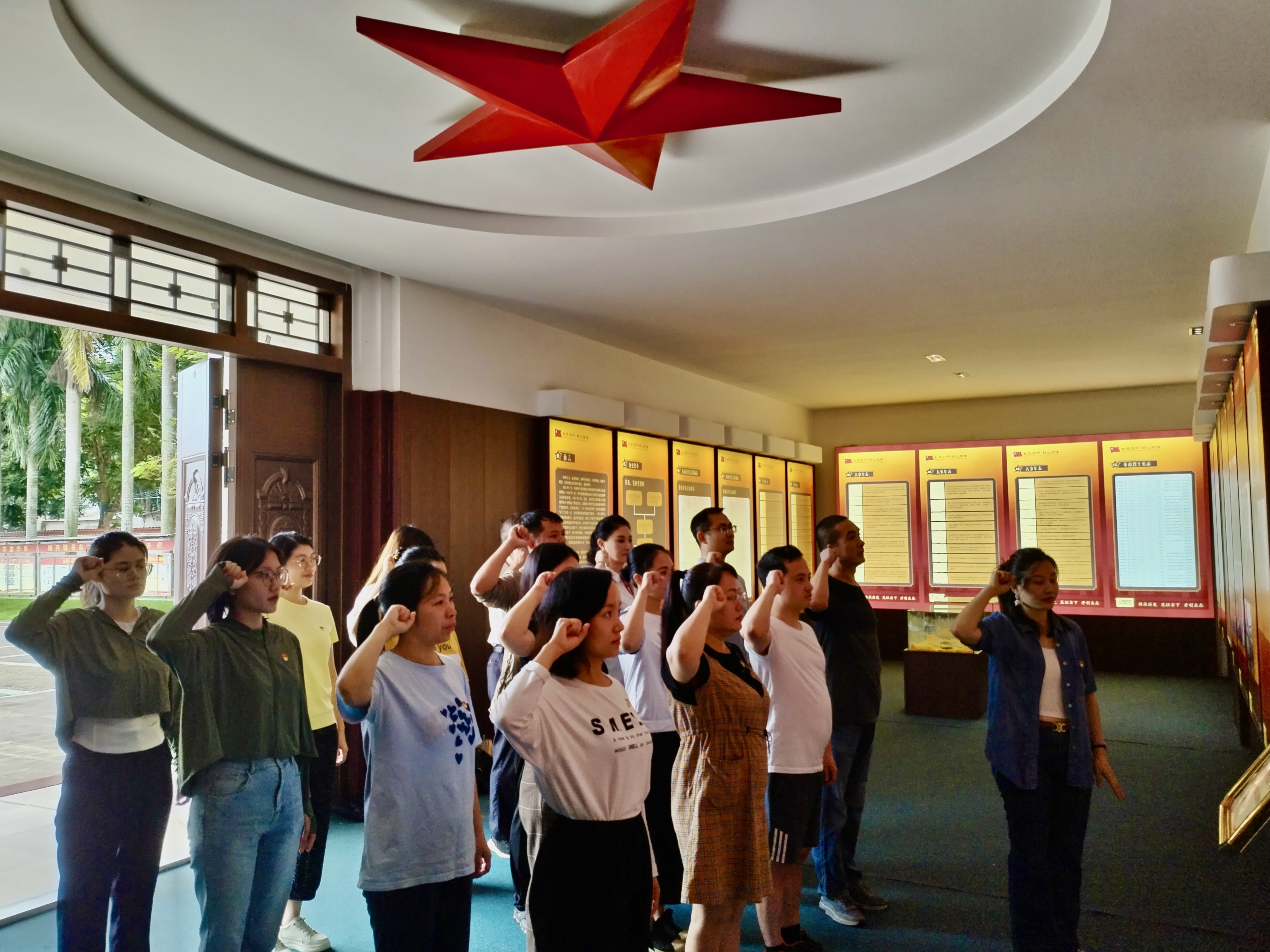 革命老區(qū)蒼東村位于??谑旋埲A區(qū)城西鎮(zhèn)南郊,是海南省第一批全國精神文明示范村,該村2001年獲評為“軍民共建模范單位”,2002年被省委組織部評為“五好黨支部”。當天上午,全體黨員實地參觀了蒼東村紅色歷史展館與革命烈士故居,在了解蒼東村的歷史中開啟紅色之旅。參觀結束后,黨員同志們面對鮮紅的黨旗莊嚴宣誓,在重溫入黨誓詞中堅定初心和使命,進一步增強黨組織的凝聚力。