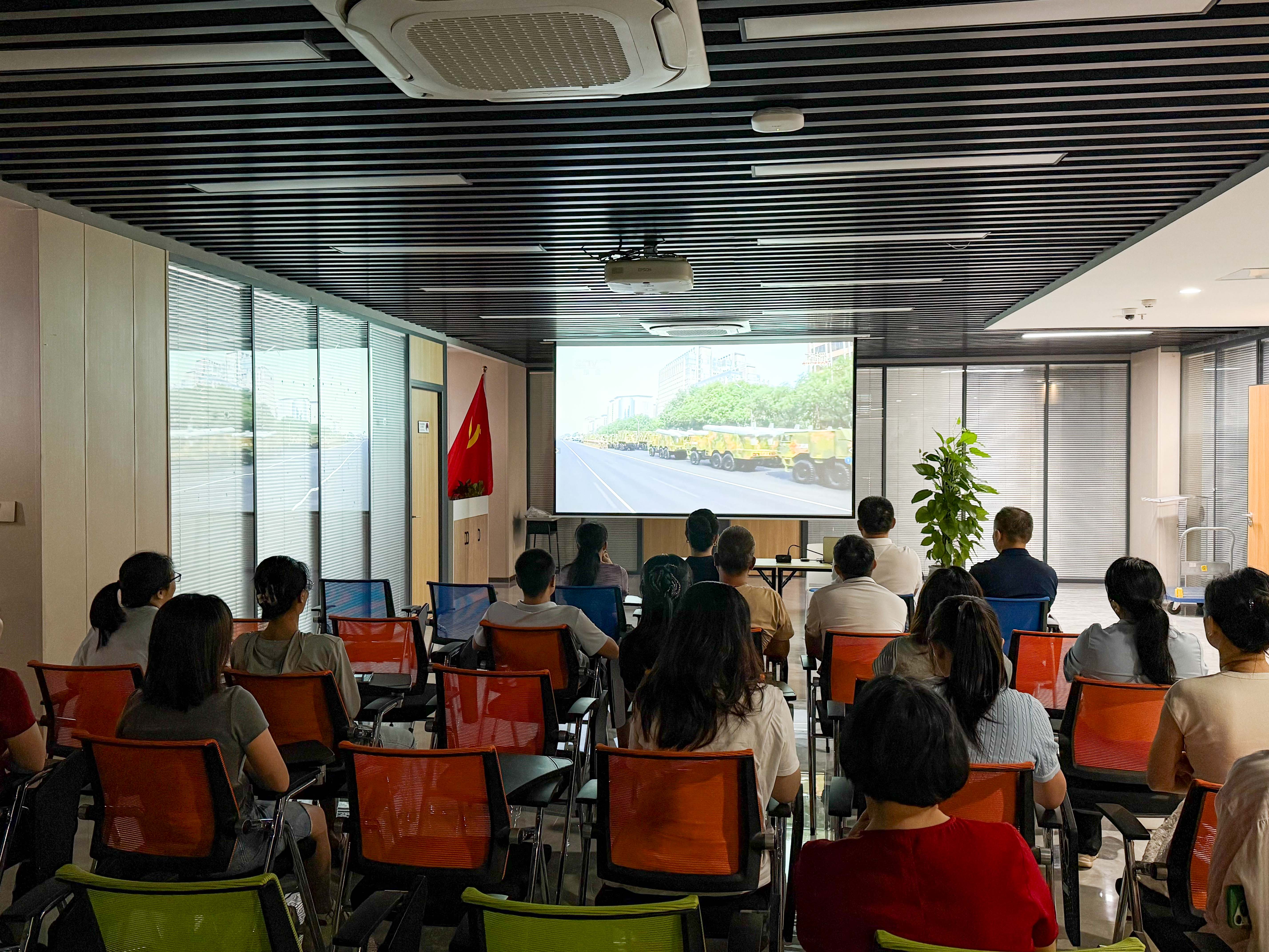 直播期間,大家認(rèn)真聆聽(tīng)習(xí)近平總書(shū)記的重要講話,凝心觀看閱兵儀式的每一個(gè)精彩瞬間??罩凶o(hù)旗梯隊(duì)、徒步方隊(duì)、戰(zhàn)旗方隊(duì)、裝備方隊(duì)和空中梯隊(duì)等45個(gè)方(梯)隊(duì)依次通過(guò)天安門(mén)廣場(chǎng),氣勢(shì)恢宏的受閱方陣讓每一位員工心潮澎湃、熱血沸騰。大家直觀感受到了新時(shí)代人民軍隊(duì)的昂揚(yáng)風(fēng)貌與強(qiáng)大的國(guó)家實(shí)力,深深被這場(chǎng)國(guó)家盛典所震撼。